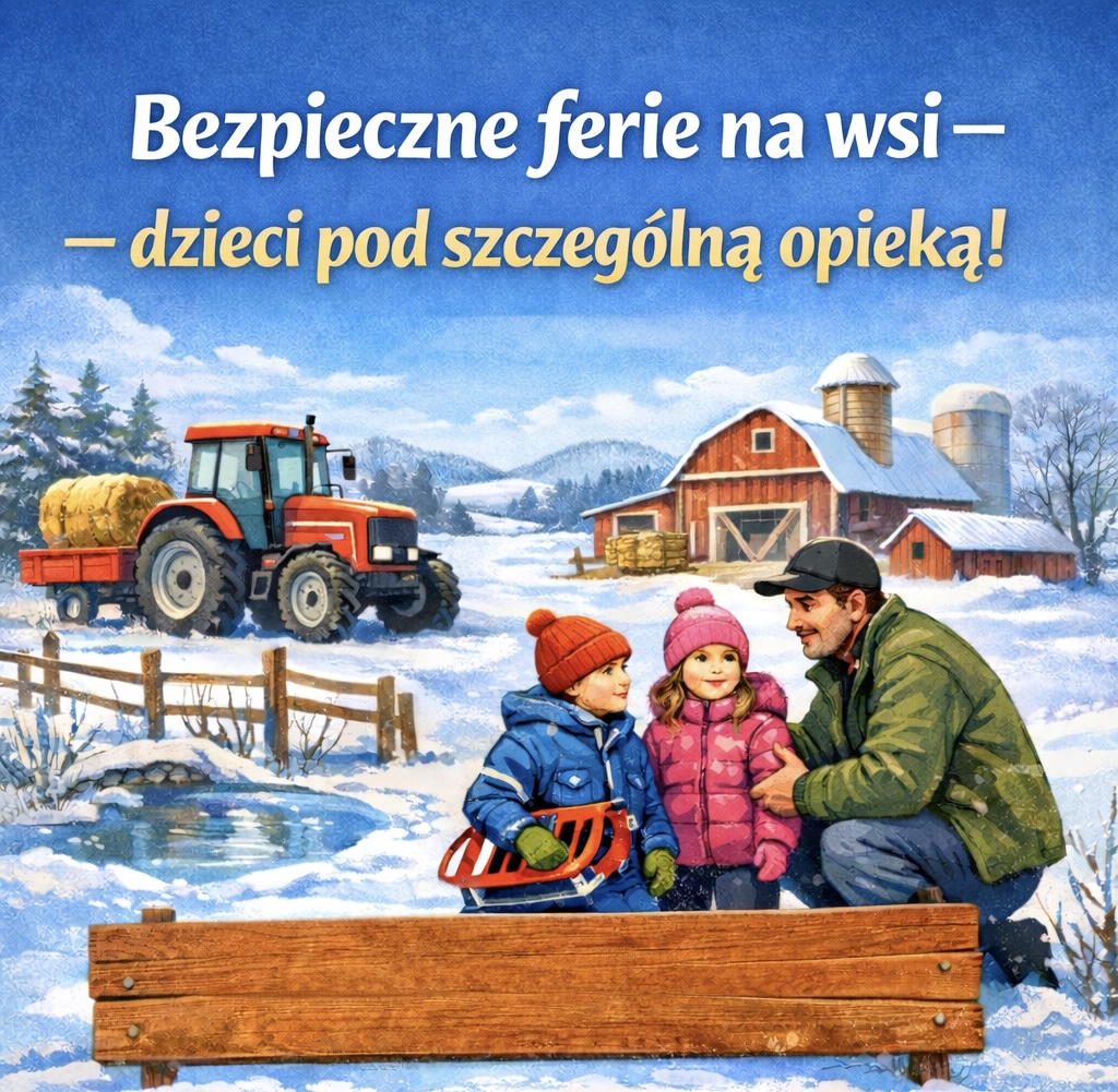 Kasa Rolniczego Ubezpieczenia Społecznego w Słupsku zwraca się z apelem do rolników oraz społeczności wiejskiej o szczególną troskę o bezpieczeństwo dzieci w czasie zbliżających się ferii zimowych.
