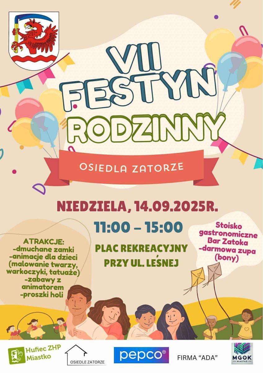 Serdecznie zapraszamy dnia 14 września 2025 r. w godz.11.00-15.00 na Festyn Rodzinny, który odbędzie się na terenie placu rekreacyjnego Osiedla Zatorze przy ul. Leśnej.