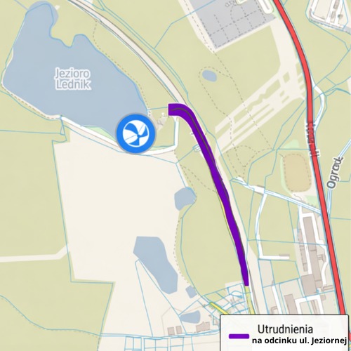 Informujemy, że w związku z rozpoczęciem inwestycji dotyczącej przebudowy ul. Jeziornej w Miastku w dniach 16 –17 kwietnia 2026 r. prowadzone będą roboty związane z wycinką drzew, w związku z tym wystąpią czasowe utrudnienia w ruchu drogowym i pieszym na odcinku ul. Jeziornej w kierunku jeziora zgodnie załącznikiem graficznym.