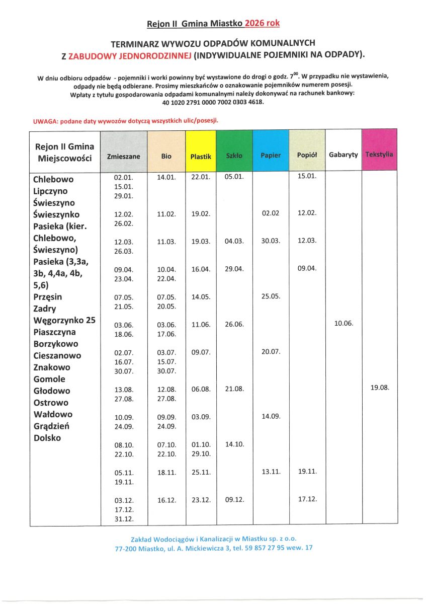 Harmonogram wywozu śmieci